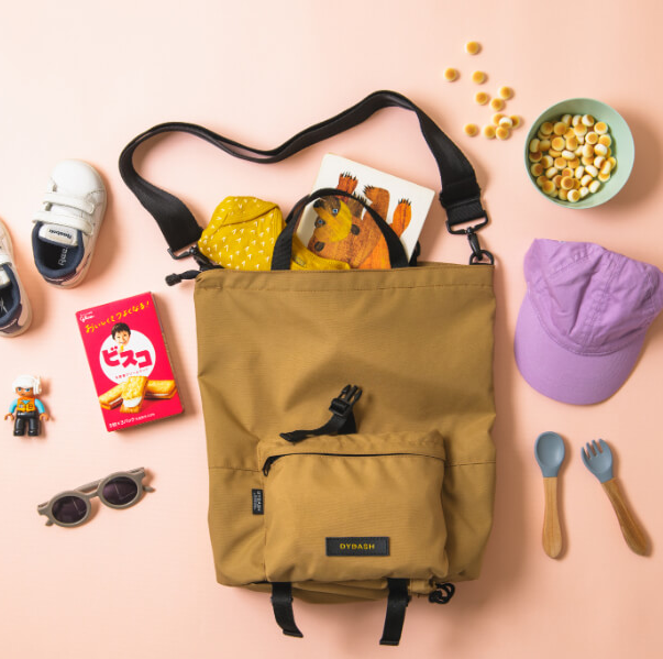 普段使いから万博まで幅広く活用していただけて嬉しいです!携帯イスをクリップで止めたり、折りたたみ傘を専用スペースに収納したりと、色々な使い方を試していただいているのが伝わってきます。